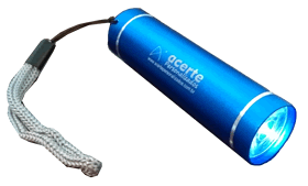 FE 05 - Lanterna Bastão led. Tamanho: 9 x 2,4cm Cores: Azul, Cinza e Preto